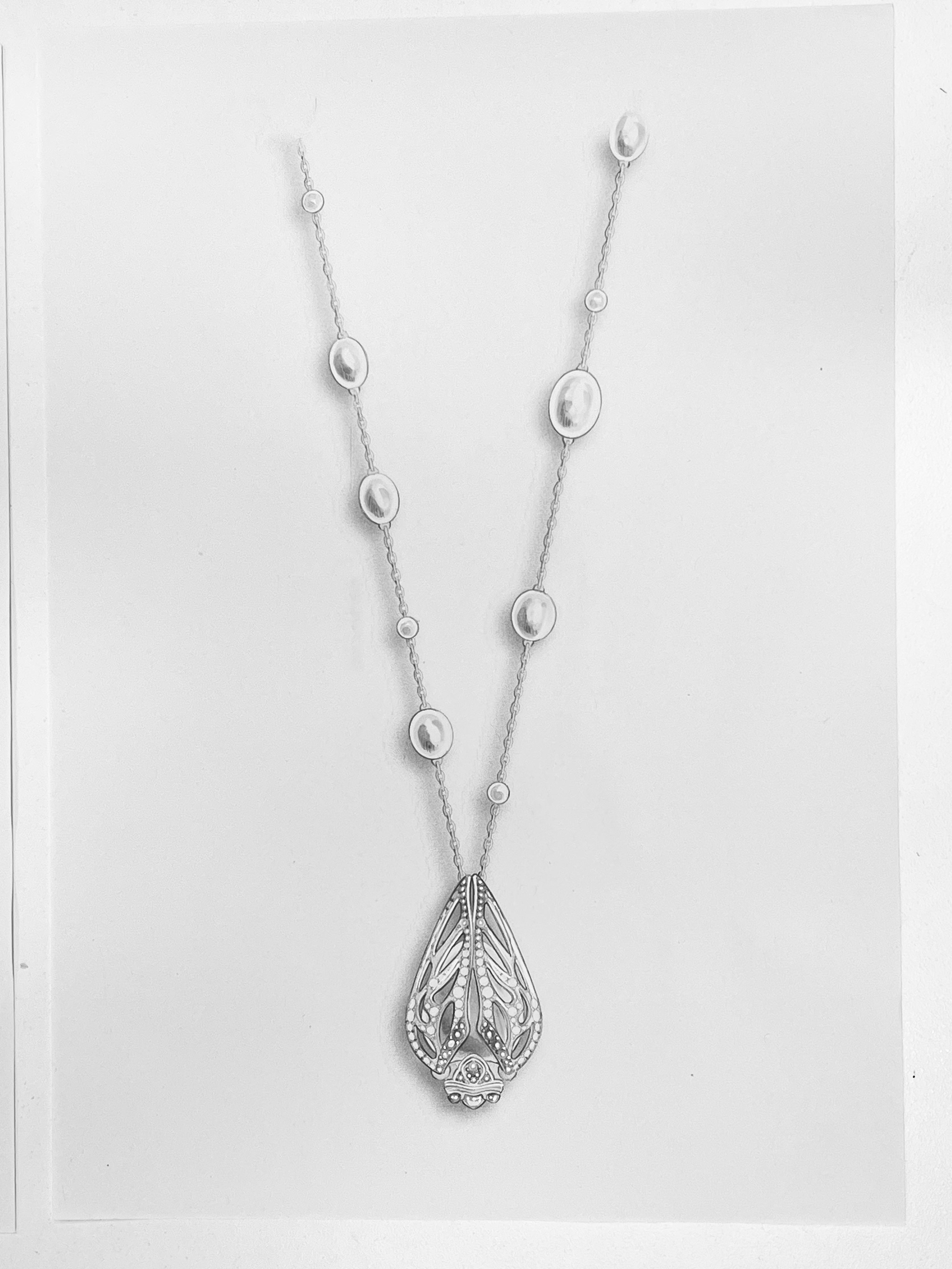 A celebration of joyful transformation, this necklace captures the moment a cicada rises into light. Its wings gently unfurl to reveal a radiant pearl, evoking renewal, freedom, and the quiet power of becoming.