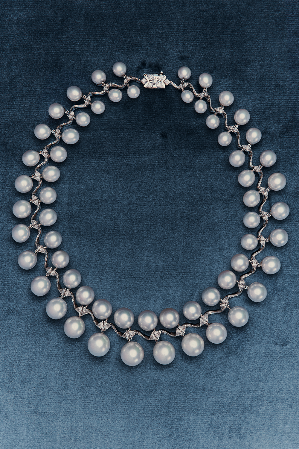 6-12mm Pearls, Diamonds, and White GoldWAVE PEARL COLLIER