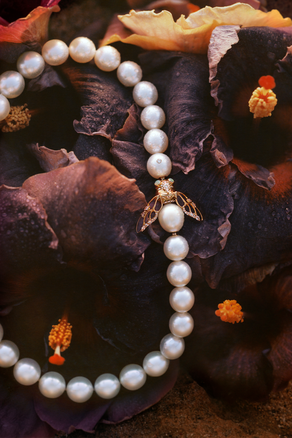 12mm Drop Pearl, Diamond, and Yellow GoldLACEWING CICADA PEARL CLASP
