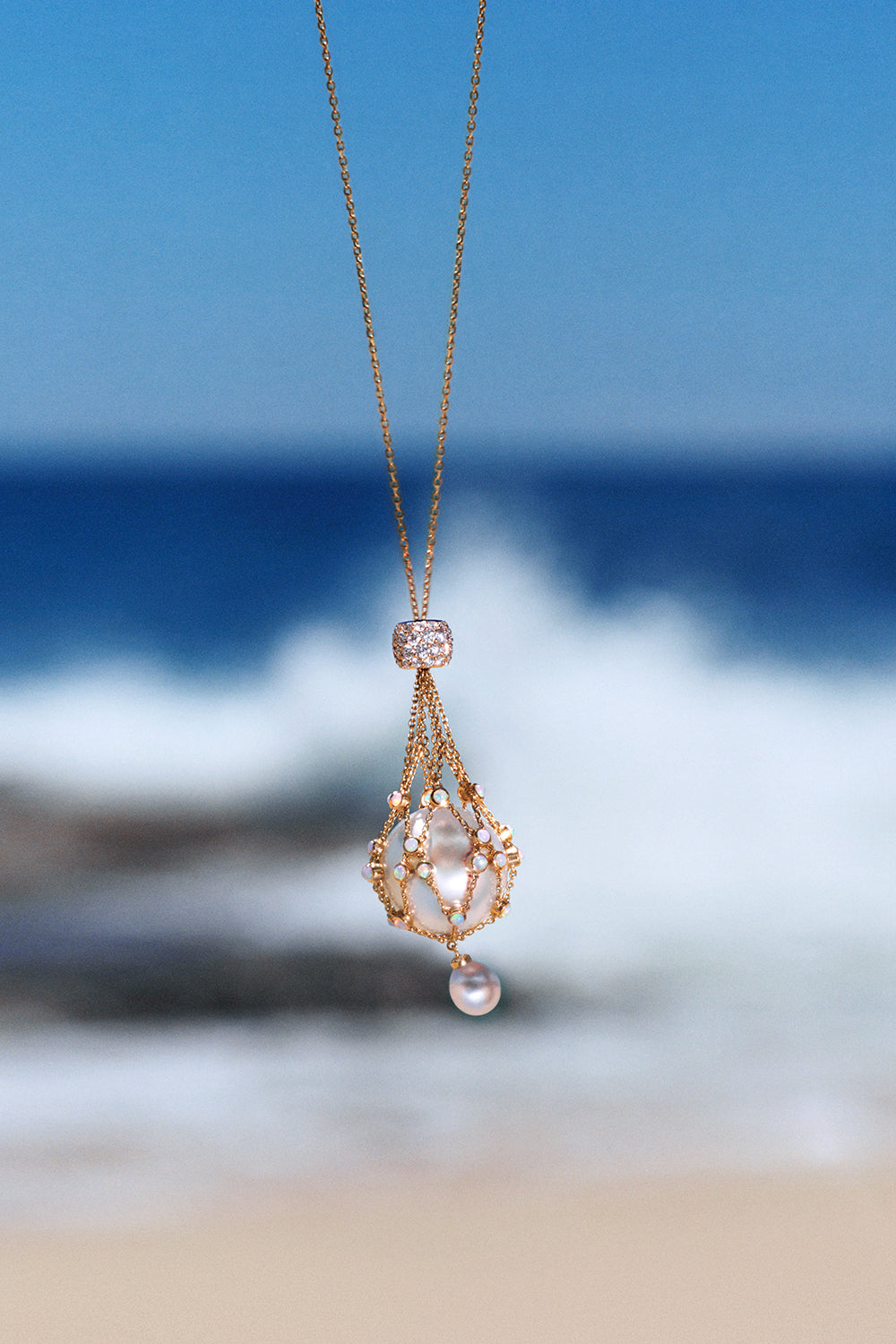 Encased in a delicate gold mesh net, Lavalier ensures that story continues, suspended close to the heart.