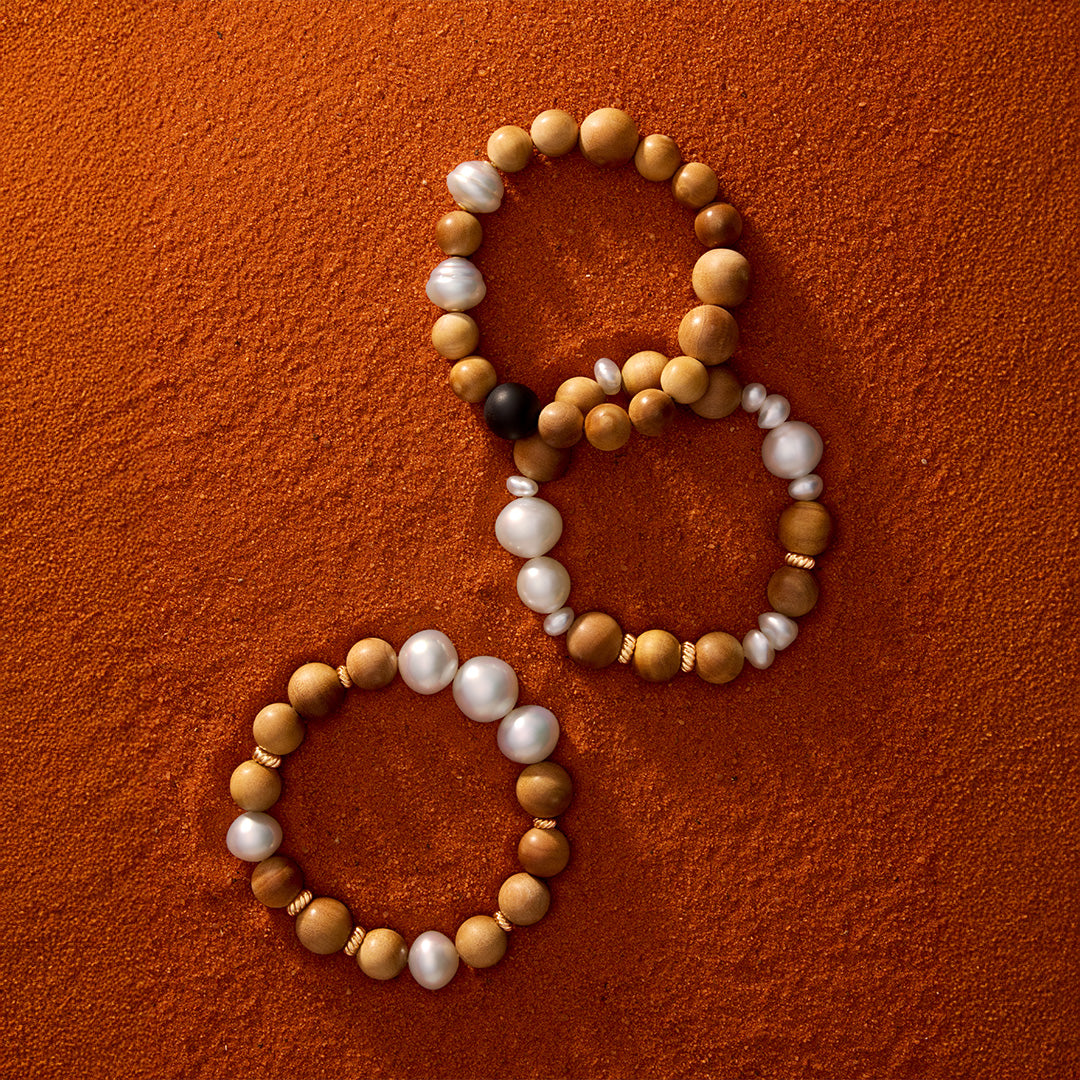 10mm Circle Pearl and SandalwoodKIMBERLEY DUSK PEARL BRACELET