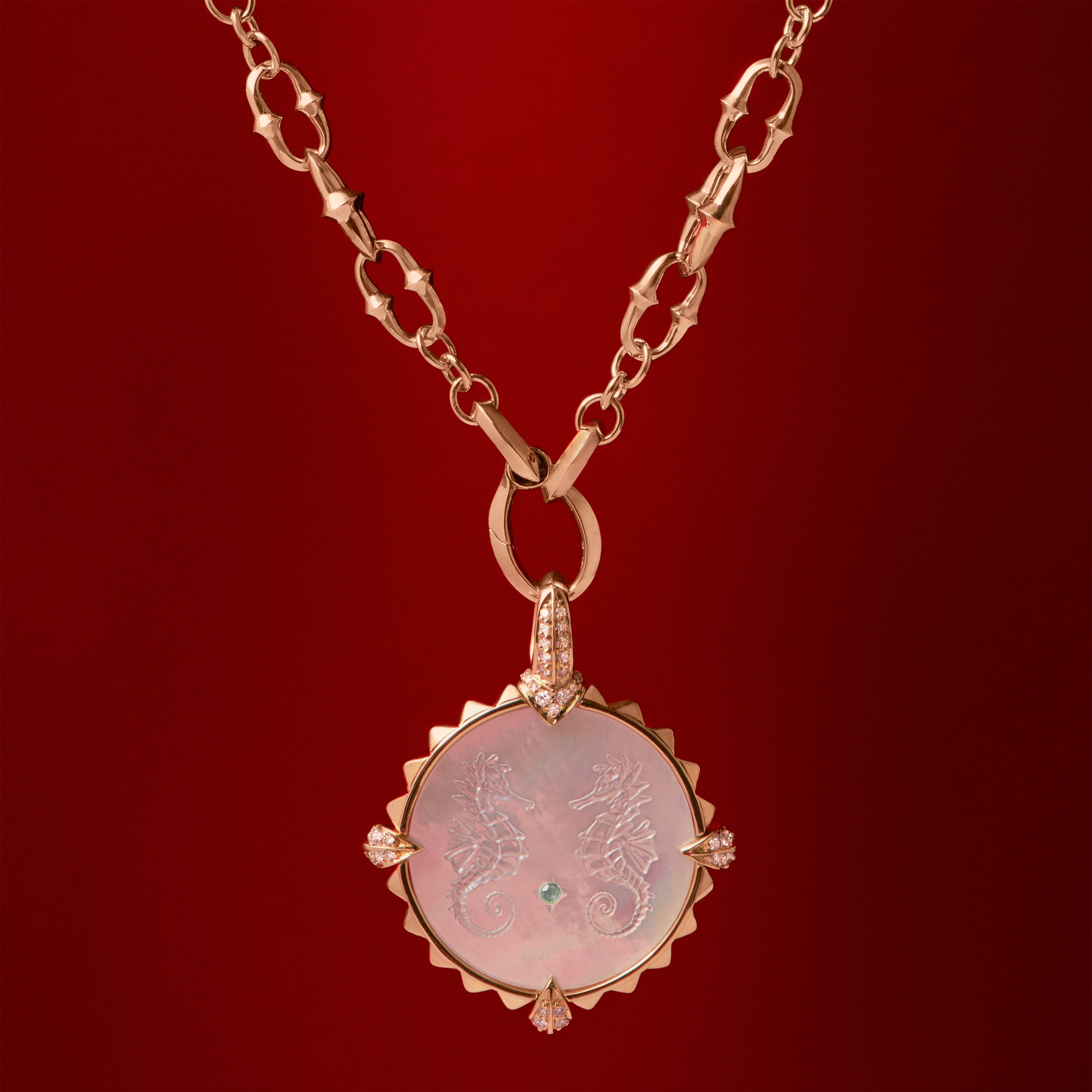 Mother of Pearl, Diamonds, and Yellow GoldCOIN CHARM PEARL NECKLACE