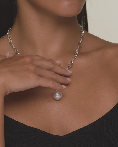 15mm Oval Pearl, Diamonds, and White GoldPaspaley Dive Charm Necklace featuring 1, 15mm oval Australian South Sea Pearl and 8 white diamond (0.03ct) in 18K white gold. Additional charms sold separately.