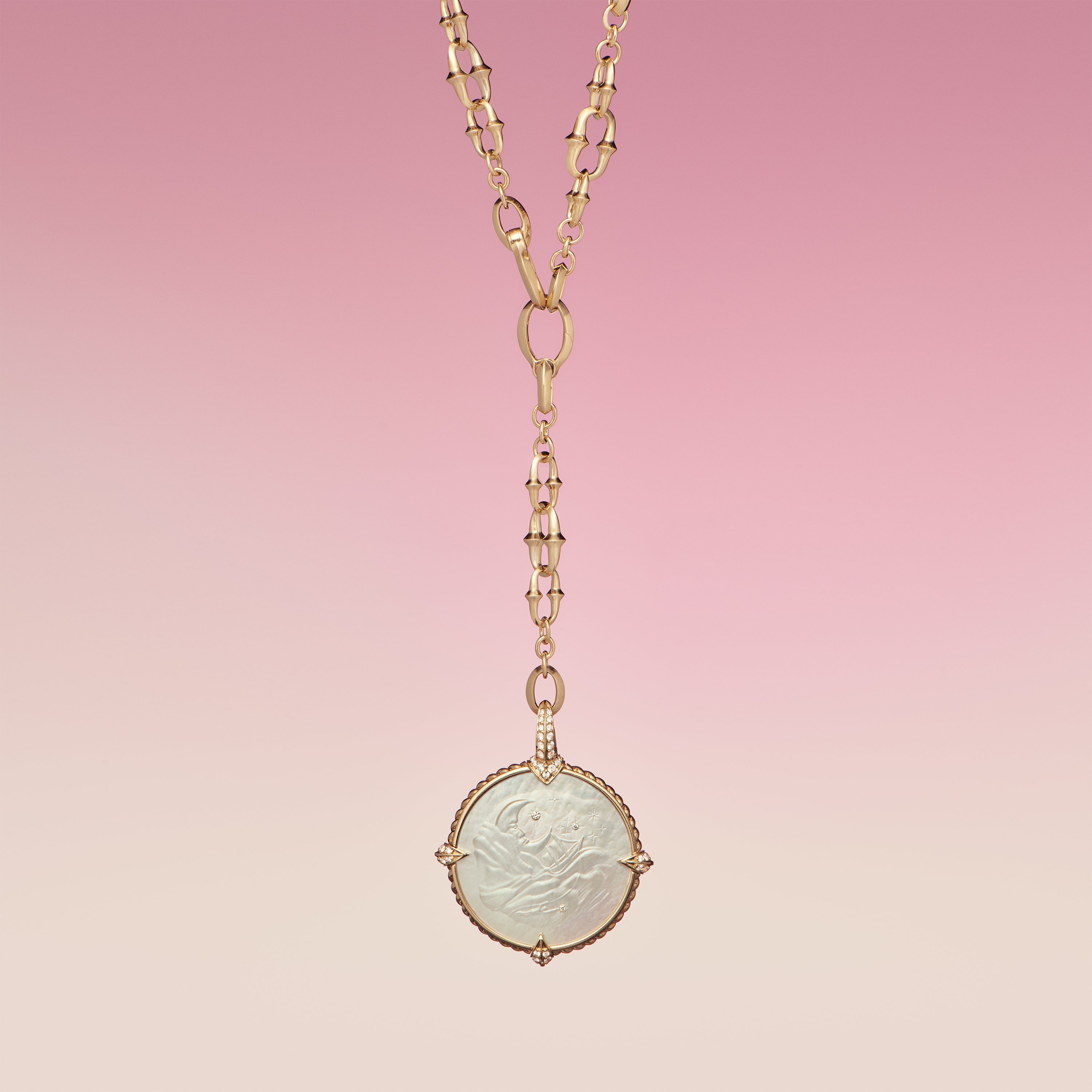 Mother of Pearl, Diamonds, and Yellow GoldCOIN CHARM PEARL NECKLACE