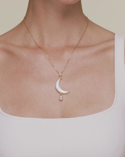 7mm Keshi Pearl, Diamonds, and Yellow GoldDIAMOND CRESCENT MOON NECKLACE