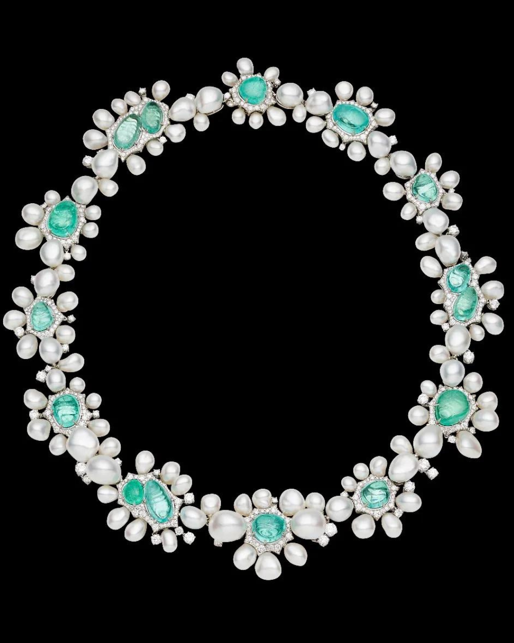 Featuring a selection of exceptional Keshi pearls collected over three decades, and rare Paraiba Tourmaline, this set celebrates the pristine blue waters of the Kimberley coastline and the illusion of the sea floor beneath the water’s surface.